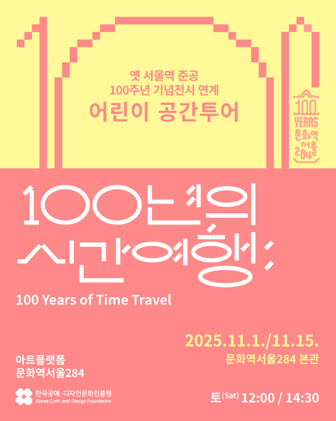 문화역서울284 내부 공간투어(11.1 ~ 11.30) 문화역서울284 아트플랫폼 <100년의 시간여행> 내부 공간투어 *전시와 연계된 공간 역사 해설 프로그램입니다. *실제 참여 인원 수에 맞춰 온라인 예약 바랍니다. 신청2025-09-12 ~ 2025-11-30 운영2025-11-01 ~ 2025-11-30 매주 화~일, 11:00/12:30/14:00/15:30 -