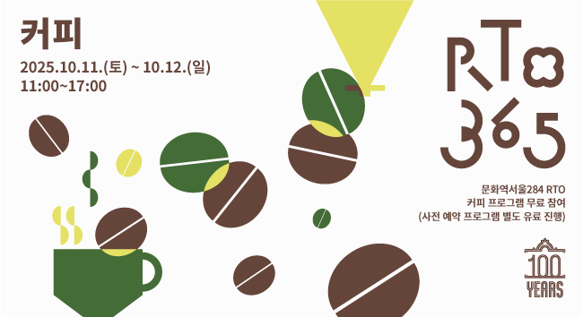 RTO365는 문화역서울284의 가장 비밀스럽고 매력적인 공간 RTO에서 만나는 동시대 문화 경험 프로젝트입니다. 올해는 문화역서울284의 100주년을 기념하여, 어린이 / 영화 / 연극 / 북페어 / 낭독회 / 커피/ 재즈 등 다채로운 주제로 프로그램을 진행합니다.